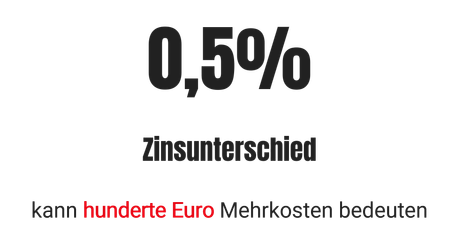 Auf dem Papier wirken minimale Zinsunterschiede oft vernachlässigbar. In der Praxis kann aber schon ein halber Prozentpunkt eine große wirtschaftliche Hebelwirkung entfalten.Der Grund ist simpel: Kredite laufen meist über mehrere Jahre, die Zinsen werden dabei mit jeder Monatsrate berechnet und erhöhen nicht nur die monatliche Belastung, sondern summieren sich auch über die gesamte Laufzeit.Bei einem typischen Ratenkredit mit einer Laufzeit von fünf Jahren kann deshalb schon ein geringer Zinsunterschied dazu führen, dass Verbraucherinnen und Verbraucher auf die Laufzeit gerechnet mehrere hundert Euro an Zusatzkosten tragen müssen. Bei höheren Kreditsummen oder längeren Laufzeiten verstärkt sich dieser Effekt entsprechend.
