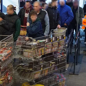 Böllerverkauf in Hamburg gestartet: Lange Schlange vor Lagerverkauf