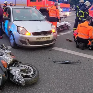 Unfall in Hamburg: Pkw und Motorrad krachen zusammen – Krankenhaus