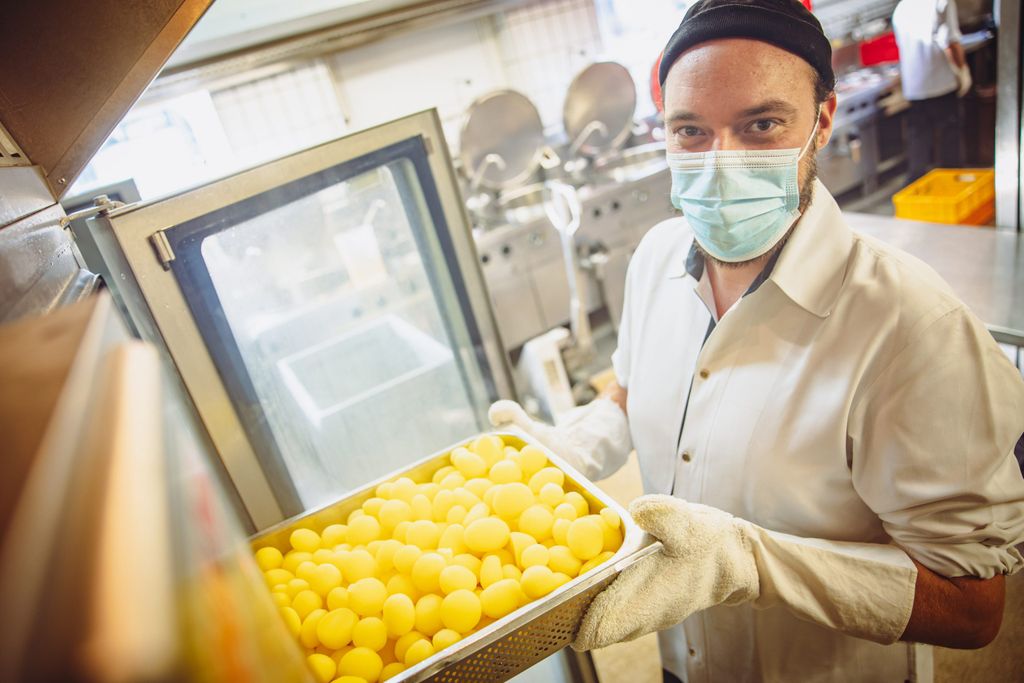 Nein, heute steht Frikassee auf dem Speiseplan. Wir kaufen das Geflügel direkt vom Landwirt – ohne Zwischenhändler. Er stallt 500 Hähnchen für uns auf und wir nehmen sie garantiert ab. Das ist für beide gut. Und wir verwerten dann wirklich das gesamte Tier. Für Ragouts, Frikadellen etc. und die Knochen kann man für Brühe auskochen. Innereien wie Leber etwa geben wir an Restaurants weiter, die mögen die Kinder eher nicht.