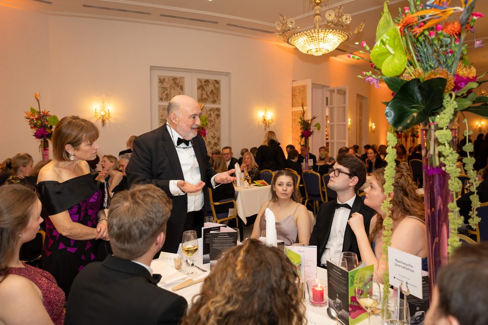 Die Gastgeber des Abends gaben dann auch den Auftakt für die Reden des Abends: Jan Frenzel, Vorstandsmitglied der Stiftung der Hamburger Presse, und Peter Ulrich Meyer, Vorsitzender der Landespressekonferenz, begrüßten die Gäste. Darunter: Bürgermeister Peter Tschentscher (SPD), die Zweite Bürgermeisterin Katharina Fegebank (Grüne), Schulsenatorin Ksenija Bekeris (SPD), NDR-Intendant Hendrik Lünenborg, und Ron Prosor, Botschafter des Staates Israel, sowie Fernsehmoderator Ingo Zamperoni.