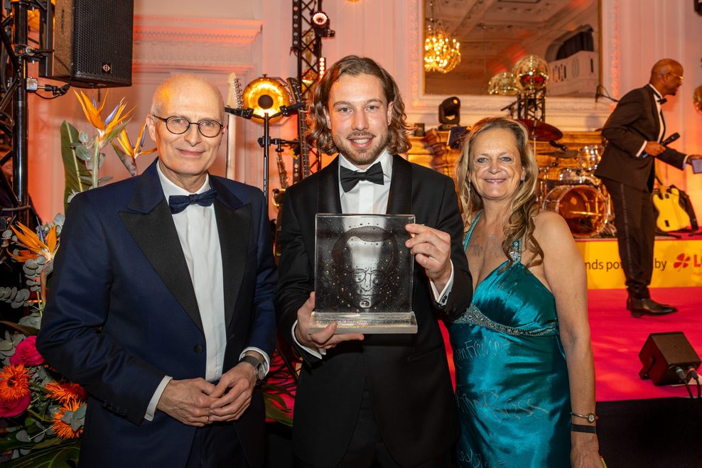 Katharina Fegebank (Grüne) mit Partner Mathias Wolff - Bürgermeister Tschentscher und die DJV-Vorsitzende Marina Friedt mit dem Preisträger Severin Pehlke (M.)