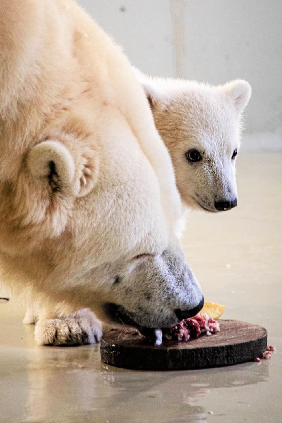 Er muss es ja wissen. Denn das letzte Eisbärenbaby in Stellingen war Victoria selbst, die 2002 bei Hagenbeck zur Welt kam. Laut Tierpark kümmert sie sich seit der ersten Minute sehr fürsorglich und liebevoll um ihr Neugeborenes. Über eine Kamera, die die Geburtshöhle der Raubtiere überwacht, können Tierpfleger und Tierärzte Victorias Verhalten überwachen.