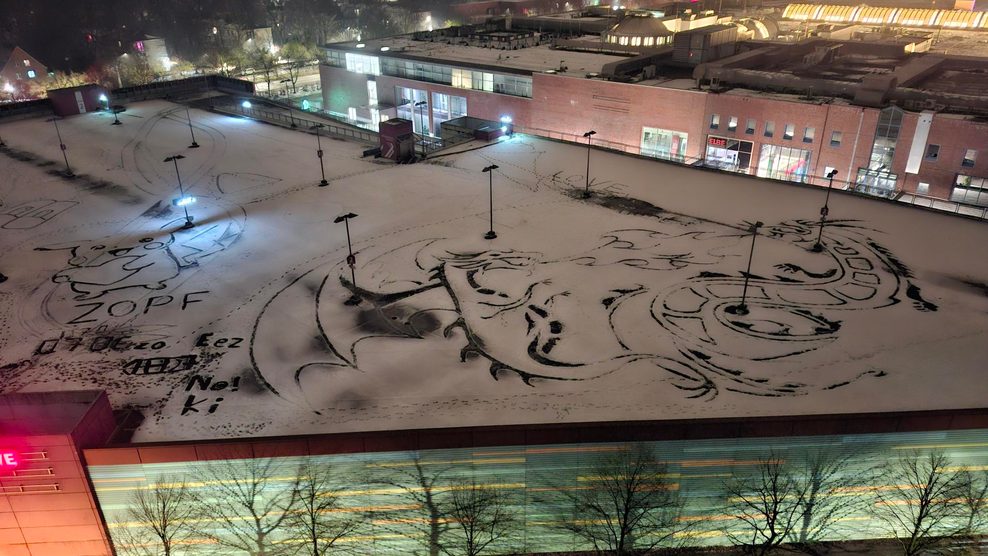 Mitten im winterlichen Hamburg tauchte auf dem Dach des Elbe Einkaufszentrums (EEZ) in Osdorf plötzlich ein gigantischer Drache auf, der allein mit Fußspuren in den Schnee gezeichnet worden war. Aus der Vogelperspektive gefilmt, ging das Werk binnen kürzester Zeit viral und begeisterte Hunderttausende Menschen.