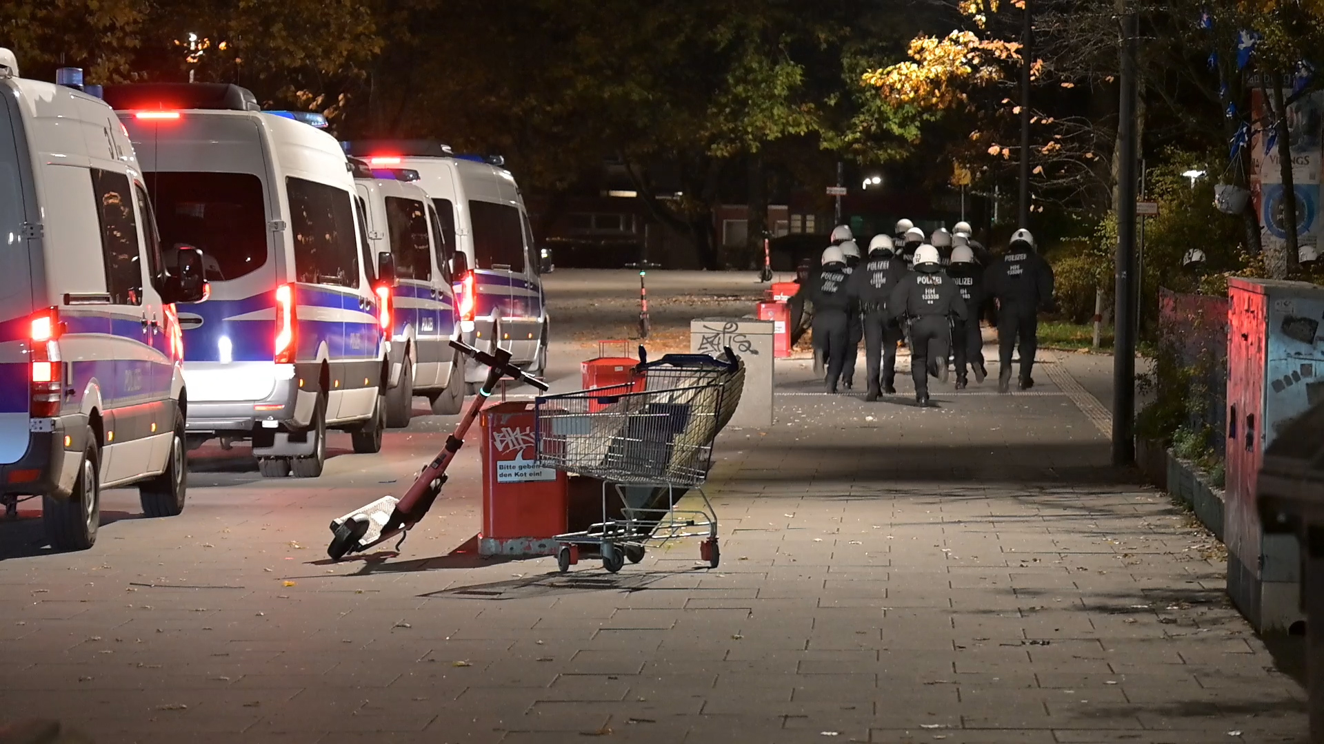 Etwas unruhiger wurde es gegen Mitternacht in Steilshoop. Jugendliche errichteten am Schreyerring eine kleine Barrikade aus E-Scootern und Einkaufswagen und warfen aus einer Gruppe heraus wiederholt Pyrotechnik auf Polizisten. Die Einsatzkräfte gingen behelmt gegen die Randalierer vor und zerstreuten die Gruppe. Festnahmen gab es zwar keine, doch danach kehrte endgültig Ruhe in die Straßen von Steilshoop ein.
