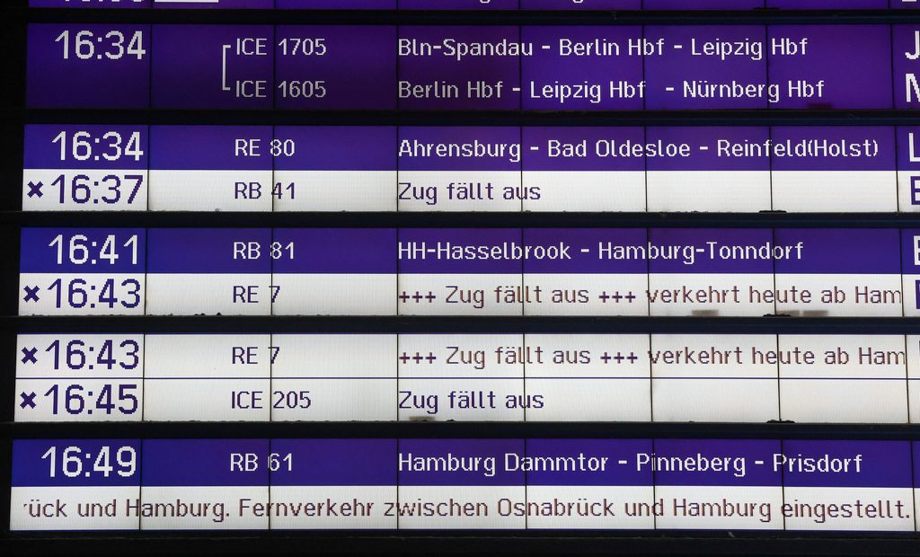 6.27 Uhr: Am Freitag fallen nach ersten Angaben Fernverkehrszüge zwischen Hamburg/Hannover, Kassel und Frankfurt/Stuttgart/Basel sowie Würzburg und München aus. In Marienhafe, Norden, Norddeich und Norddeich Mole halten keine ICE- und IC-Züge. Betroffen sind auch die EC-Zugstrecken in Hamburg und Schleswig-Holstein.