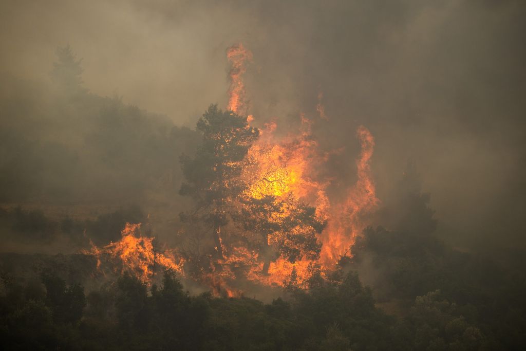 Flammen lodern in einem Waldbrand nördlich von Athen. Angelos Tzortzinis/dpa