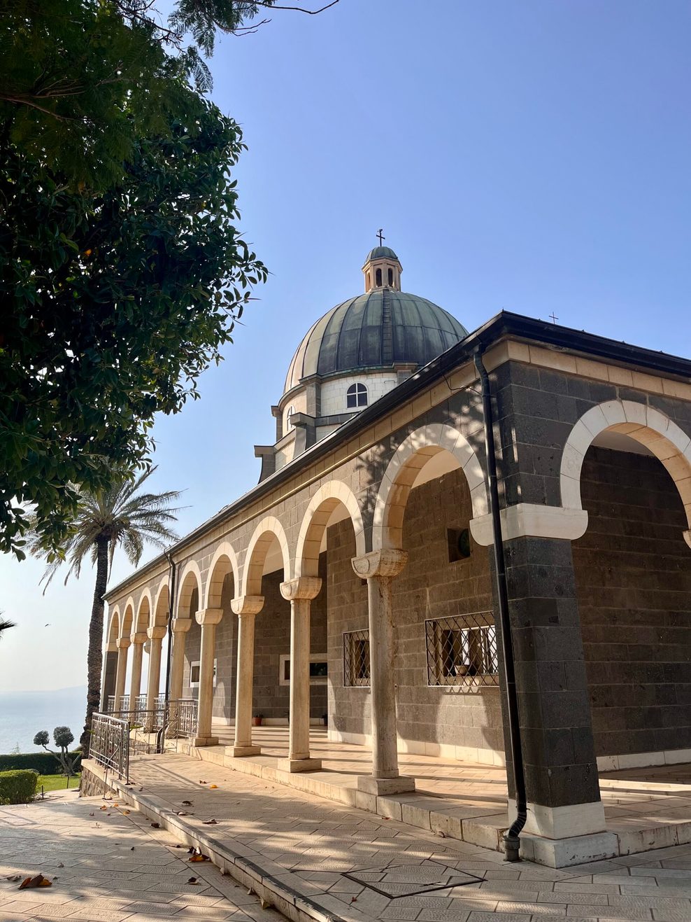 Menschenleer: die Brotvermehrungskirche am See Genezareth - Privat. Die verwaiste Basilika zur Erinnerung an die Bergpredigt im Morgenlicht: traumhafter Blick über den See Genezareth