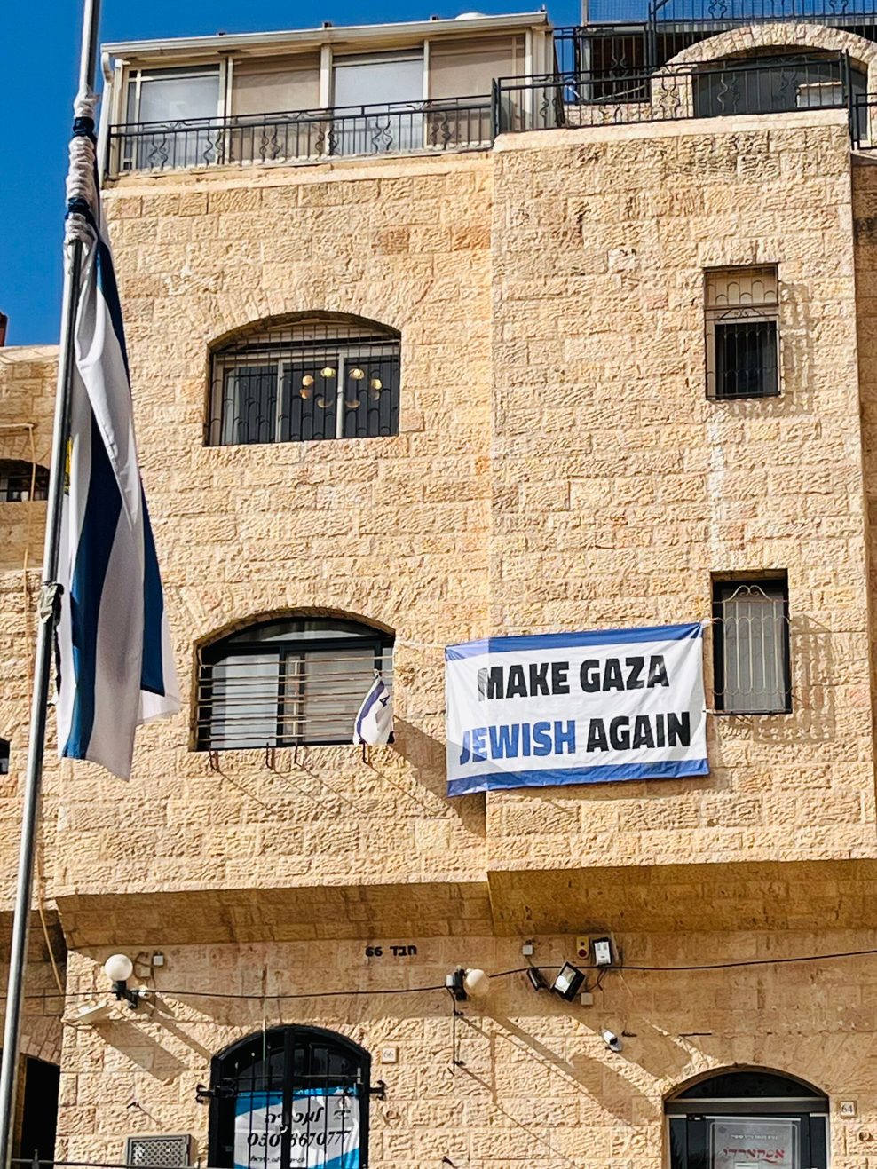 „Macht Gaza wieder jüdisch“: Ein Banner an zentraler Stelle im jüdischen Viertel der Jerusalemer Altstadt