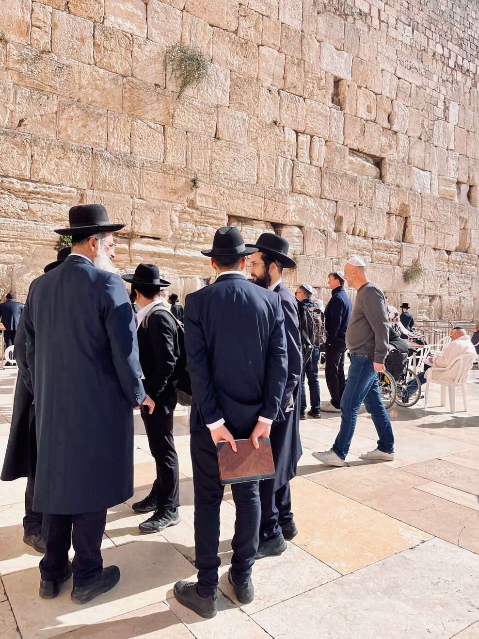 Ein kurzer Security-Check wie am Flughafen, schon steht man an der Klagemauer. - Privat. Ein Mann betet auf dem Stein, auf dem Jesu Leichnam für die Bestattung vorbereitet worden sein soll.