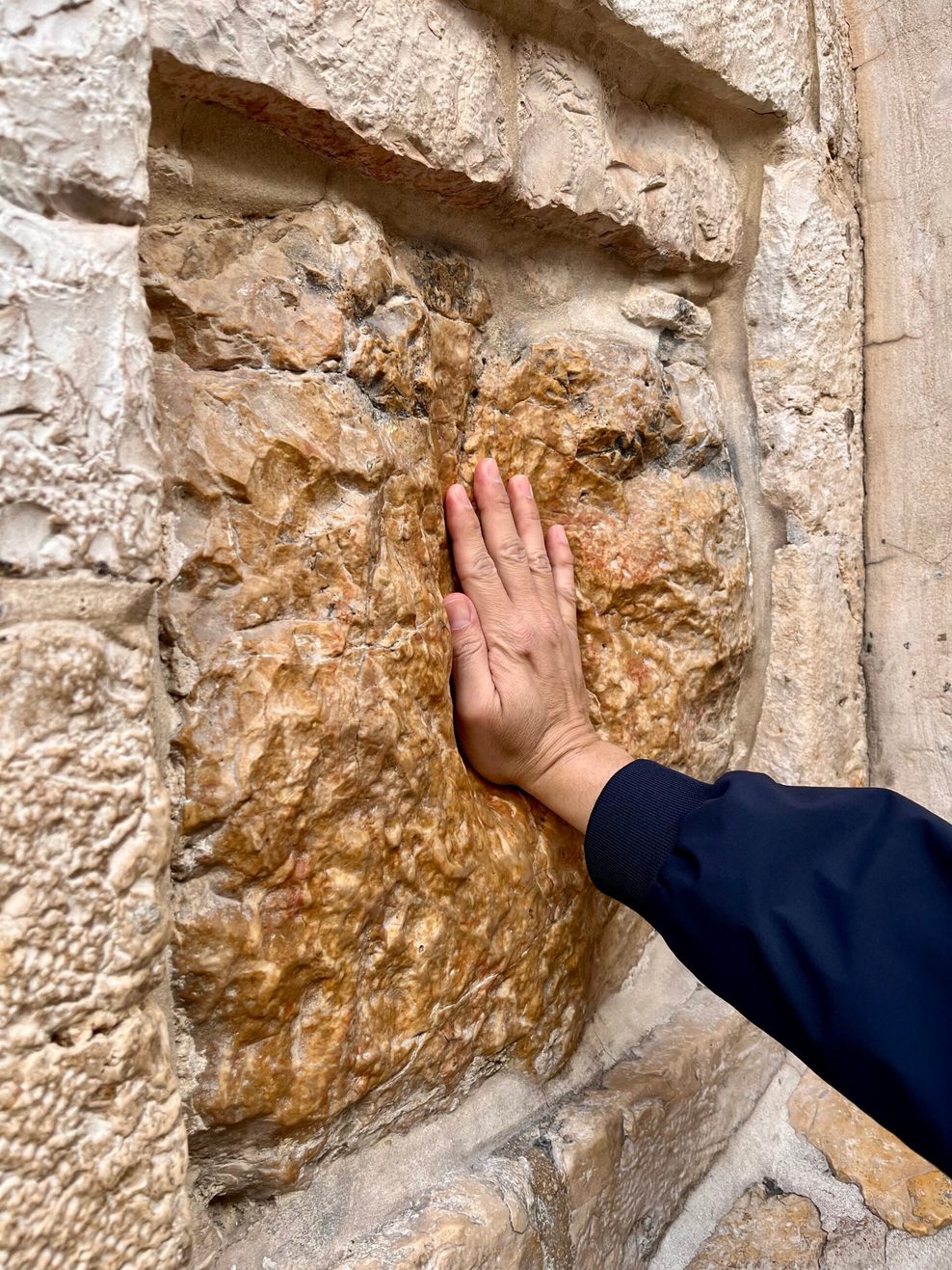 Millionen Pilgerhände haben den Stein ausgehöhlt, an dem sich einst der erschöpfte Jesus abgestützt haben soll. - Privat. Ein kurzer Security-Check wie am Flughafen, schon steht man an der Klagemauer.