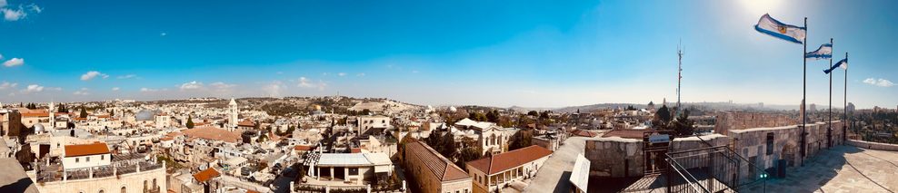 Zurück in der Jerusalemer Altstadt. Die Stadt wirkt friedlich, wie in Tel Aviv sind kaum Sicherheitskräfte zu sehen, die Wintersonne scheint, von der alten Zitadelle geht ein herrlicher Blick über Gotteshäuser aller Art. Ein Muezzin ruft, eine Glocke bimmelt, hinter Klagemauer, Felsendom und Al-Aqsa-Moschee erhebt sich der Ölberg. Über eine Hügelkuppe schlängelt sich die Mauer, die den arabischen Teil der Stadt abtrennt. Dahinter erhebt sich die jüdische Großsiedlung Ma’ale Adumim, deren Umland die Regierung annektieren will – um damit einen künftigen palästinensischen Staat in der Mitte zu durchtrennen und so unmöglich zu machen. Der Kampf ums Land ist in vollem Gange, auch das lässt sich hier besichtigen.